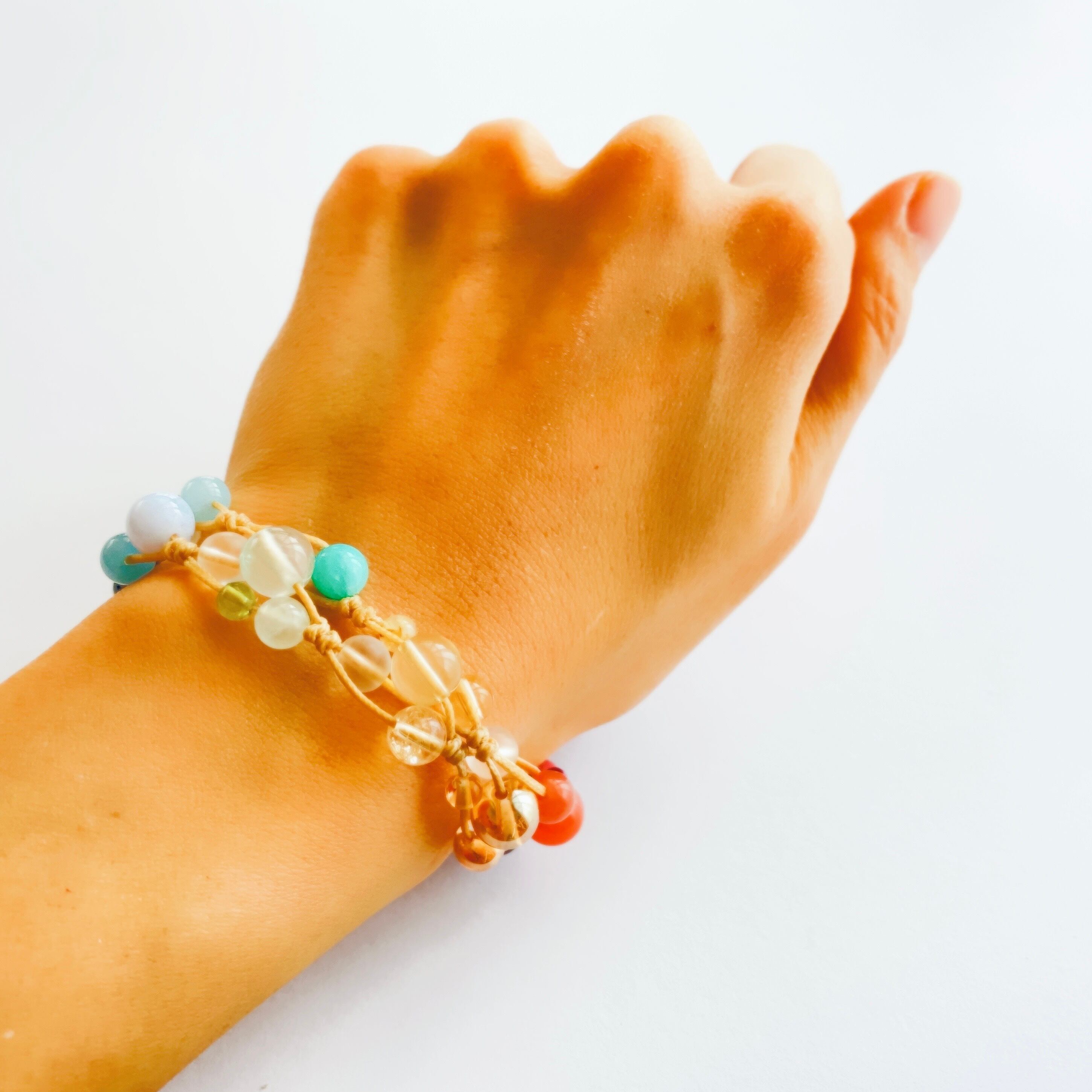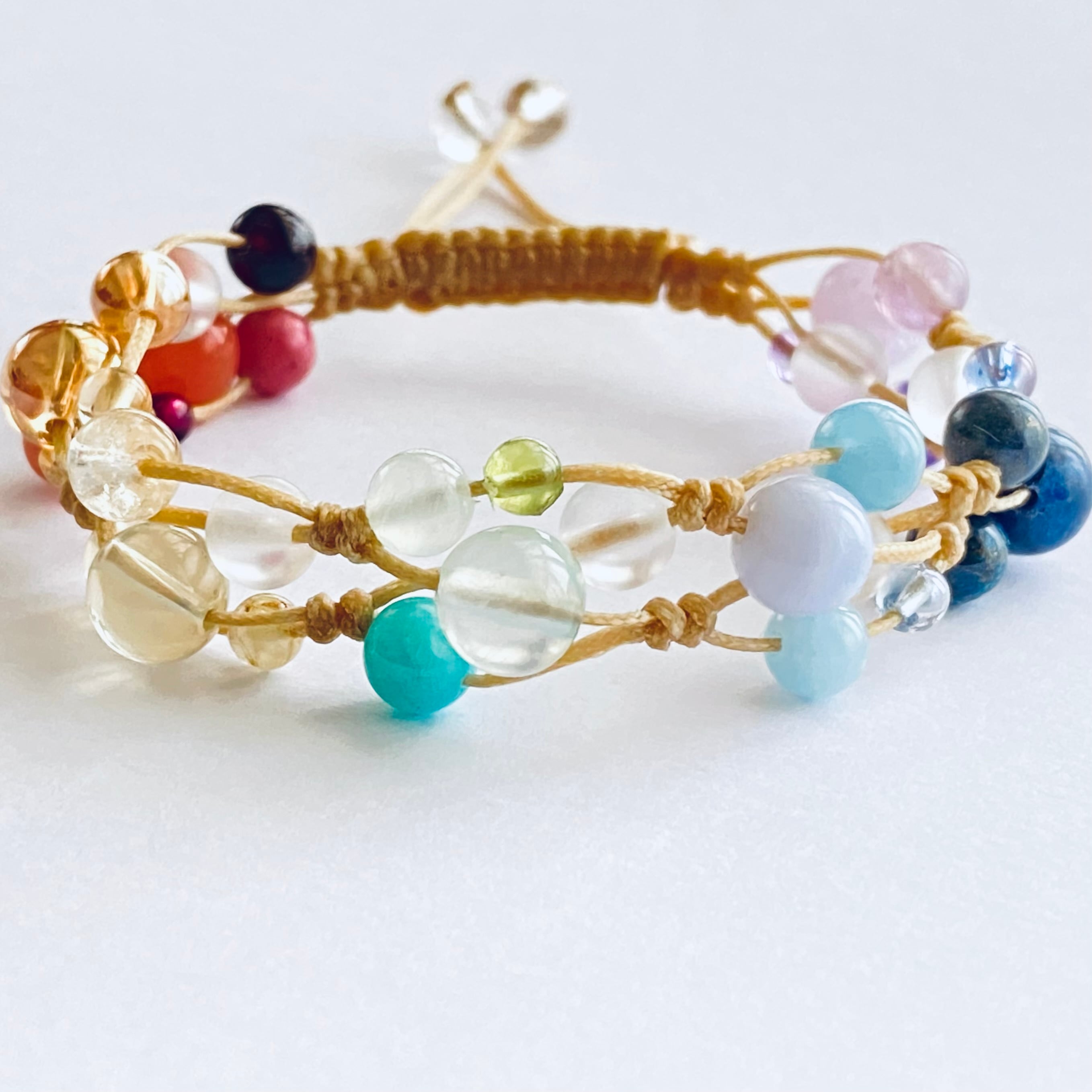 (8mm)ボツワナアゲート、ゴールデンオーラ、レモンクォーツ、プレナイト、ブルーレースアゲート、ソーダライト、ラベンダーアメジスト (6mm)ガーネット、シリシャスシスト、ロードクロサイト、ゴールデンオーラ、シトリン、プレナイト、ペルー産アマゾナイト、アクアマリン、クリソコラ、ラピスラズリ、アメジスト、ラベンダーアメジスト (4mm)ガーネット、シトリン、ルチルクォーツ、ペリドット、アクアオーラ、コスモオーラ、アメジスト