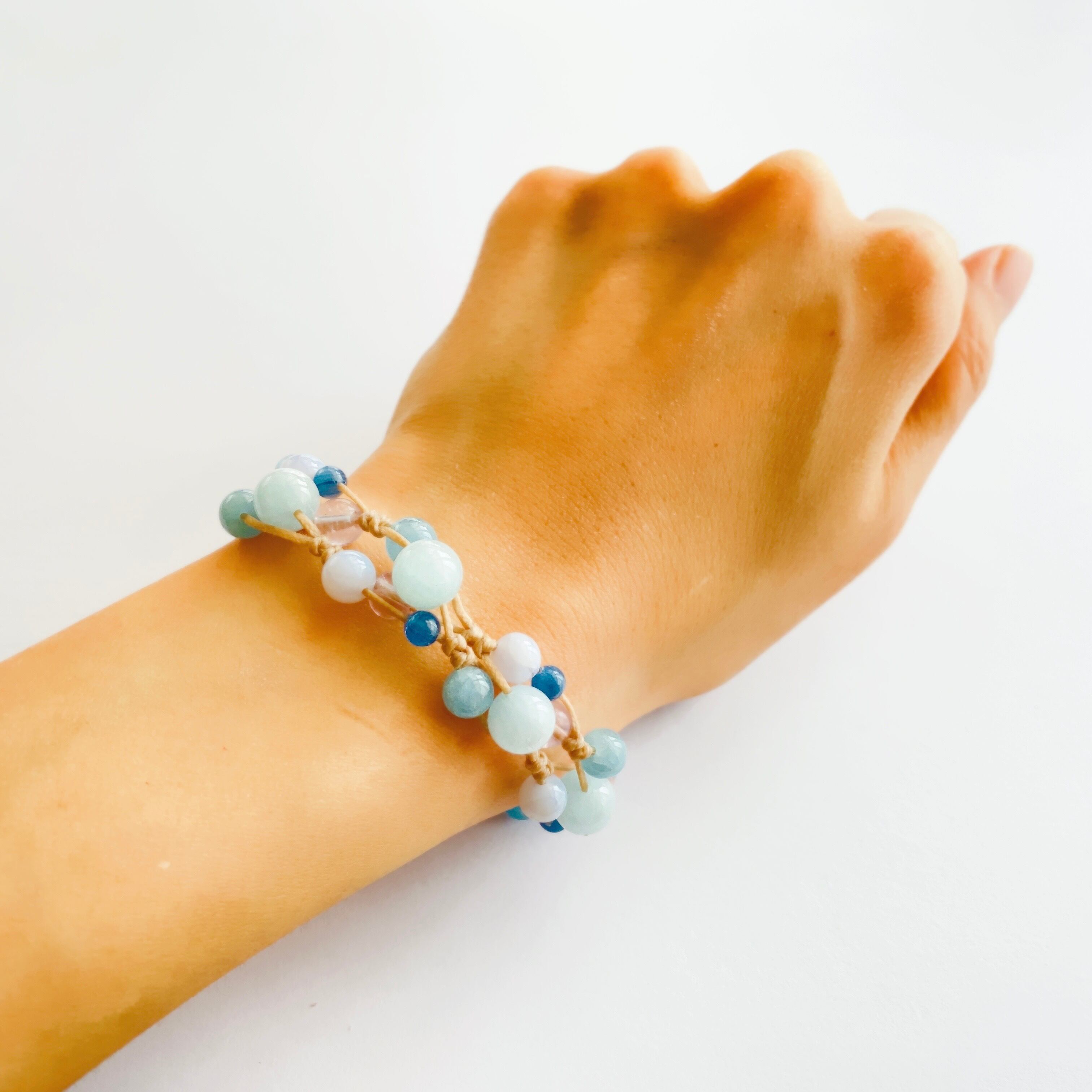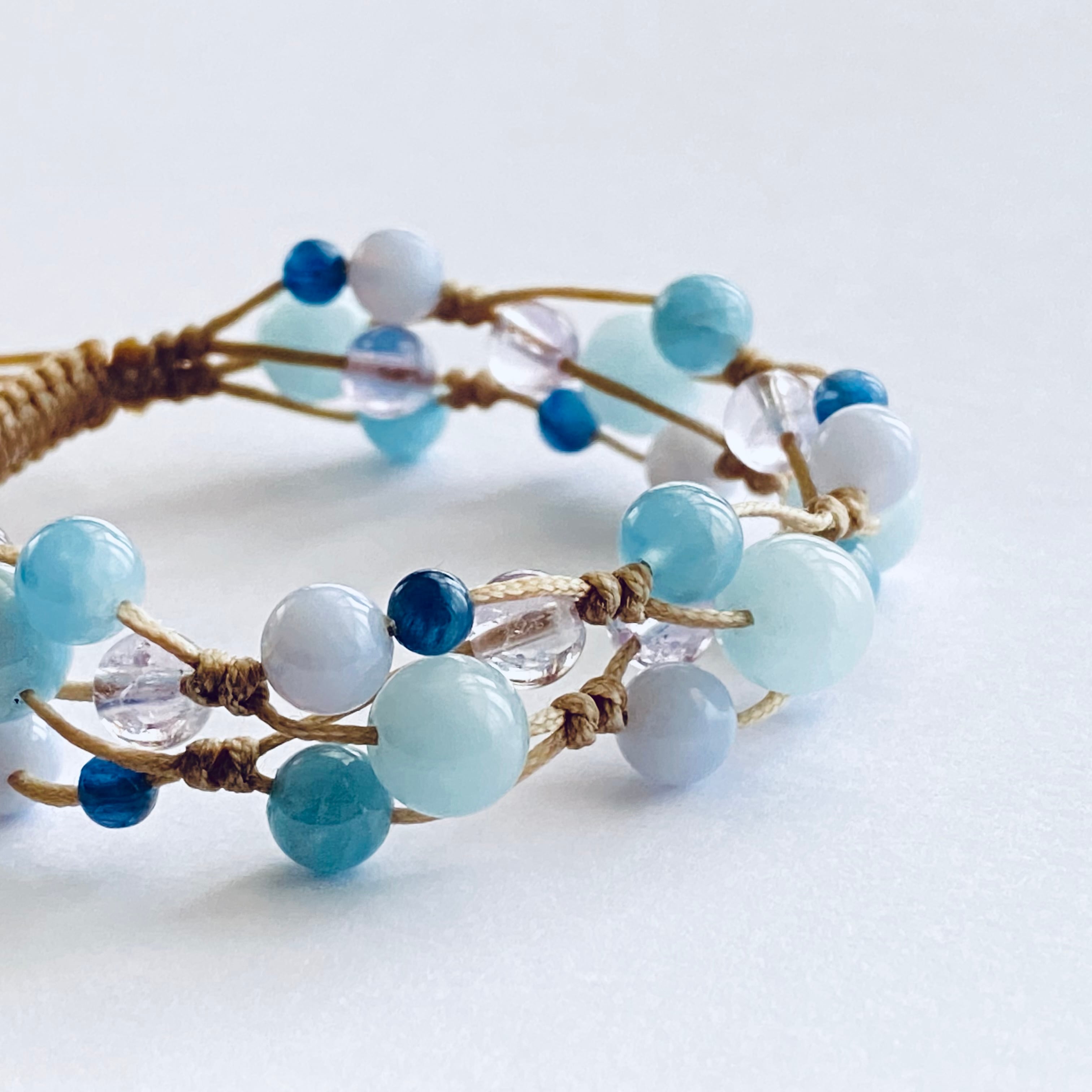 アクアマリン8mm 6mm、ブルーレースアゲート6mm、アメジスト6mm、水晶6mm、カイヤナイト4mm